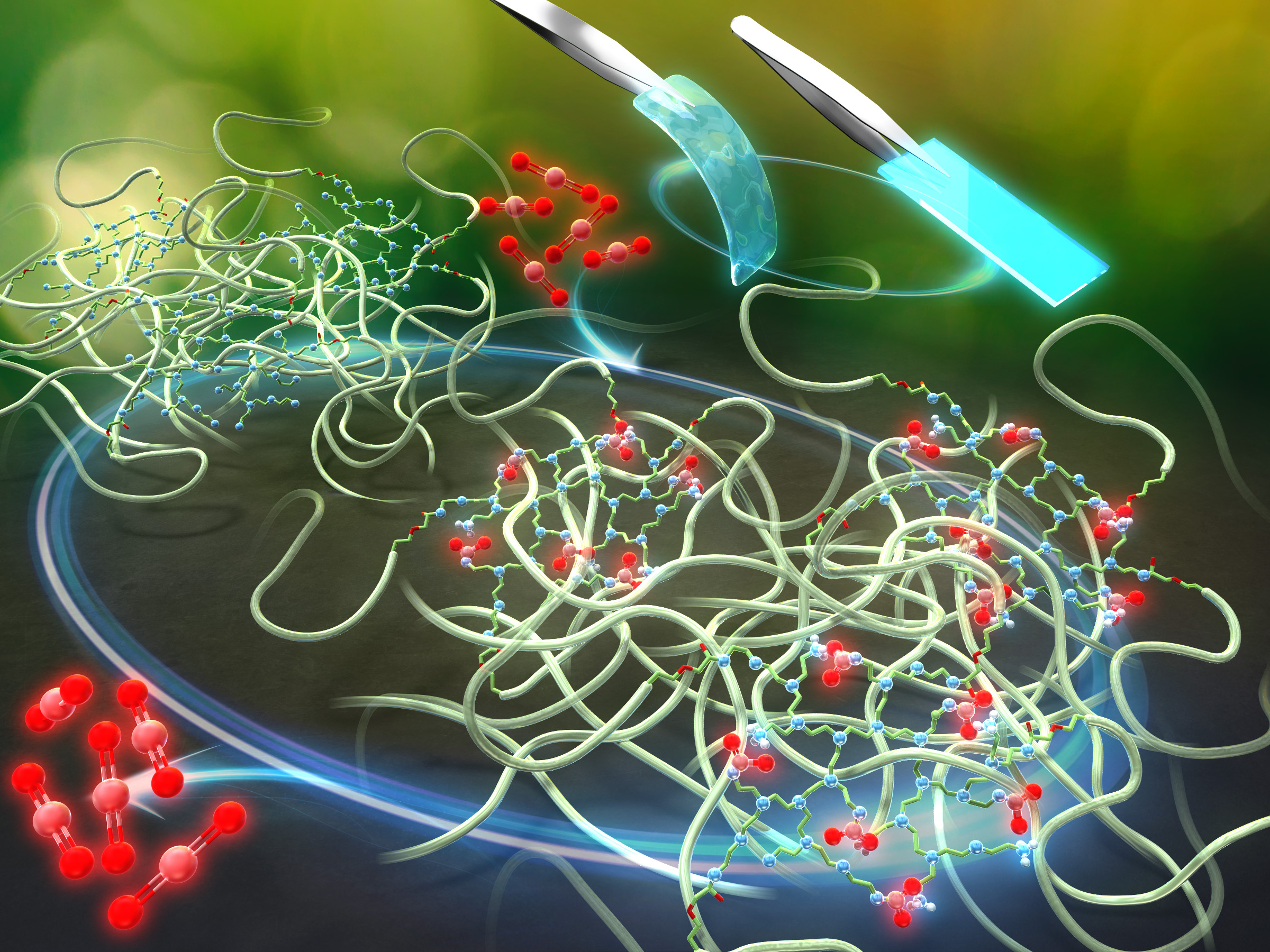 論文タイトル:CO2-triggered reversible transformation of soft elastomers into rigid and highly fluorescent plastics